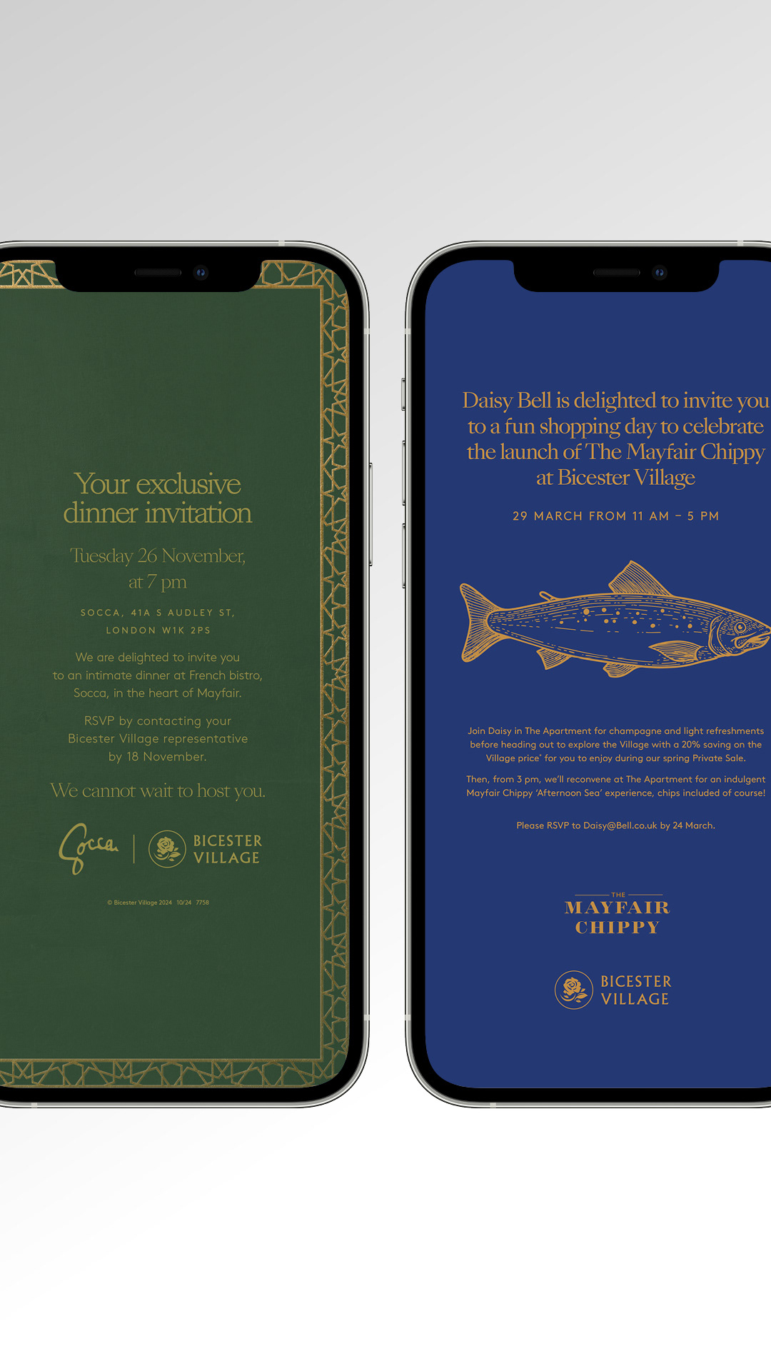 I designed a wide range of event invitations for the Private Clients team at Bicester Village, covering luxury fashion, food and lifestyle collaborations. Each piece combined the Village’s branding with that of its partners to deliver a cohesive and premium experience for VIP guests.